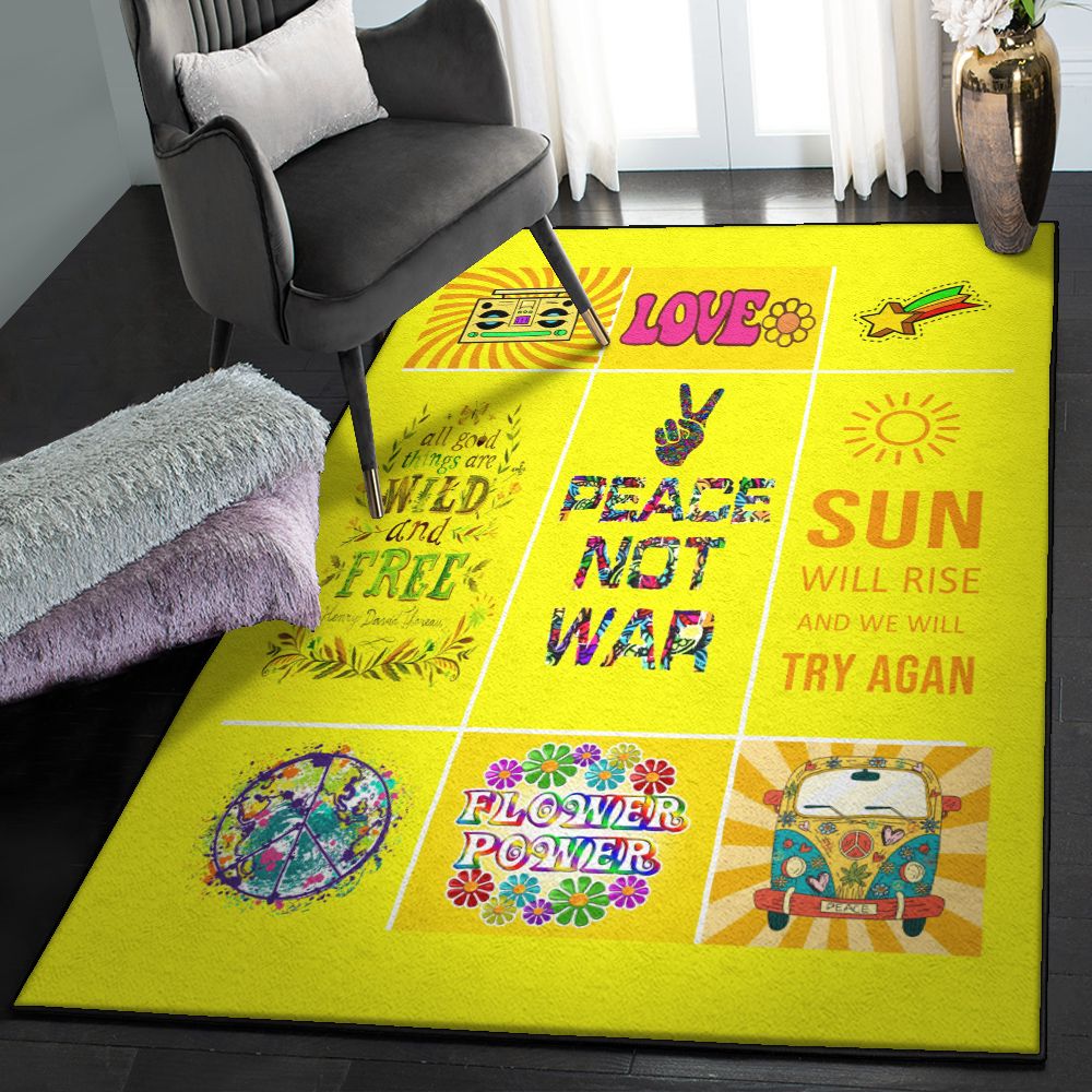 Hippie Art Non Shedding Area Rug, Hippie Flower Power GS CL Rug