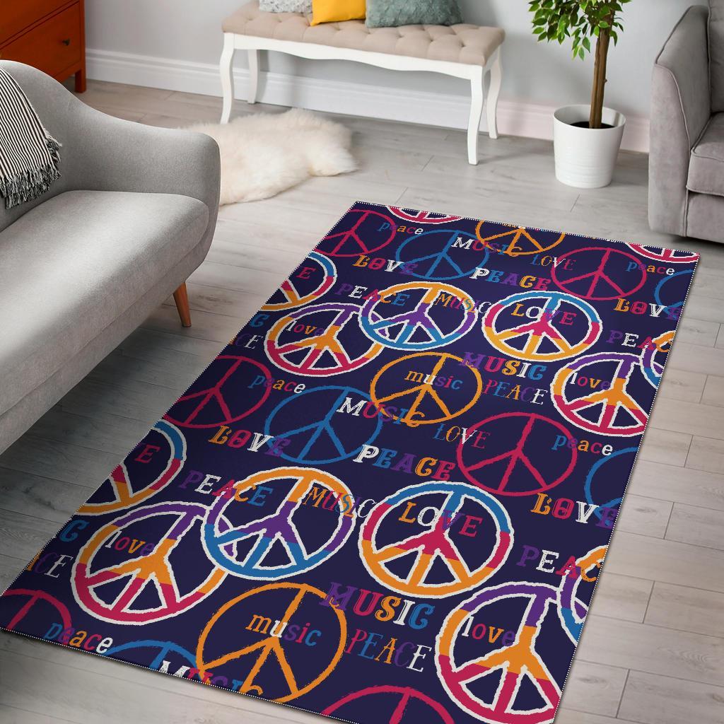 Hippie Music Van Peace Sign Pattern Print Area Rug Living Room Rug Home Decor