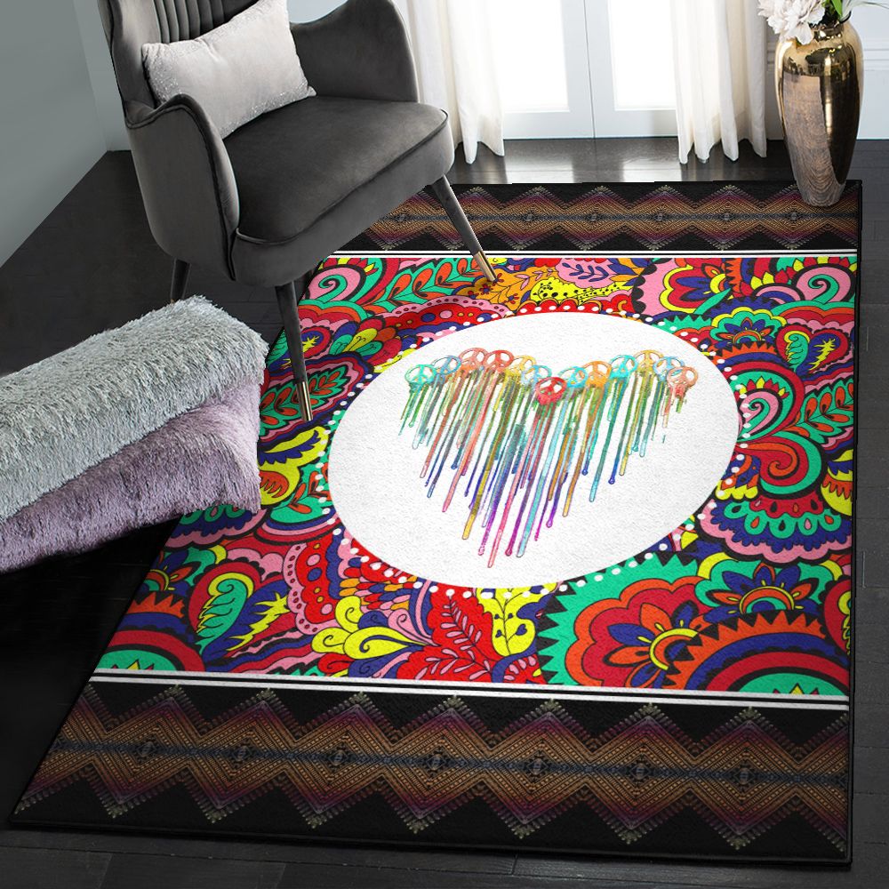 Hippie Sun And Moon Washable Area Rugs, Colourful Peace Sign Hippie Rug
