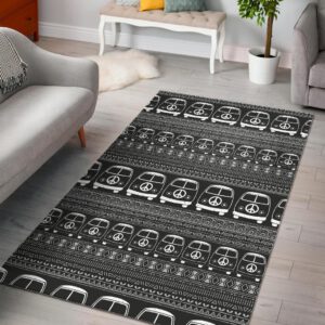Hippie Aztec Van Peace Sign Pattern Print Area Rug