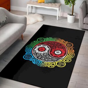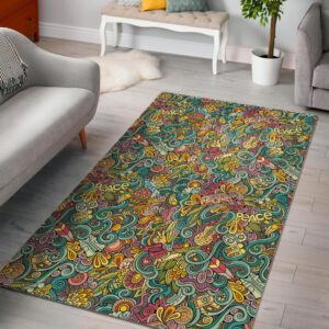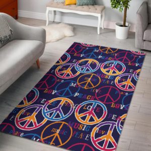 Hippie Paisley Floral Peace Sign Pattern Print Area Rug